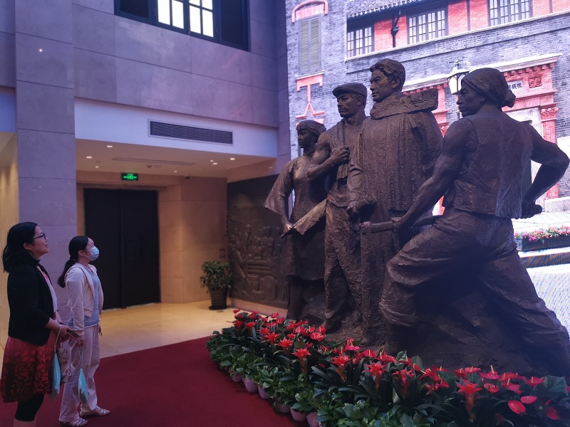 参观结束后,党员们还回忆、交流了各自印象深刻的文艺作品,以各个年代文化生活的集体记忆丰富、加深党史学习的效果。有的党员谈到了上世纪八十年代以真实事件为基础创作的革命电影《刑场上的婚礼》对青少年的精神感染和情感教育,以及集体观看这部电影的童年景象所展现的三十多年前的农村经济发展和文化生活;有的党员表示,听到《映山红》等革命歌曲串烧联唱让人激昂振奋;有的党员回忆到,《地道战》等战争影视剧中群众们甘愿冒着风险帮助军队和战士,帮助成功以后会十分高兴与自豪,因为他们既有朴素的善良和正义感,也会意识到自己参与了高尚的革命事业;有的党员则推荐了艺术化再现中共二大乃至建党初期人物故事的舞台剧《辅德里》。